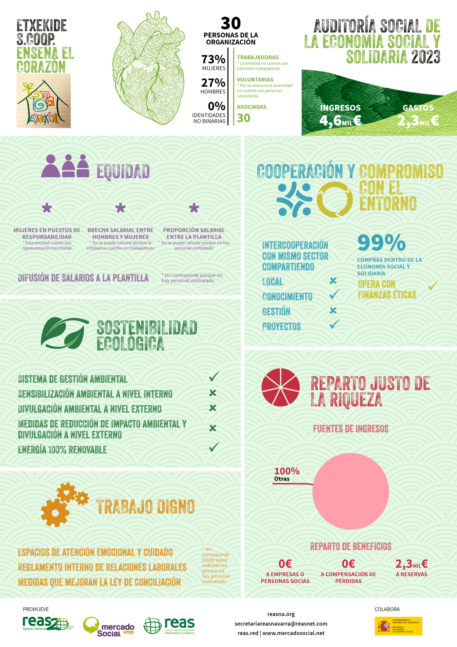 Cada año, desde la Cooperativa realizamos la Auditoría Social, una herramienta impulsada por REAS que nos permite evaluar de forma transparente nuestro compromiso con estos principios. Gracias a este proceso, renovamos anualmente nuestra acreditación y reafirmamos nuestra voluntad de seguir trabajando desde la coherencia, la ética y el compromiso con la comunidad.